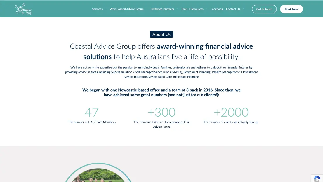 Coastal Advice Group, a nationally recognised financial advice and wealth management company, is headquartered in Newcastle with offices in Sydney, Central Coast, Port Macquarie, and Adelaide. As they set their sights on expanding their locations and increasing national coverage, they faced a challenge in aligning their web presence with their growth ambitions.